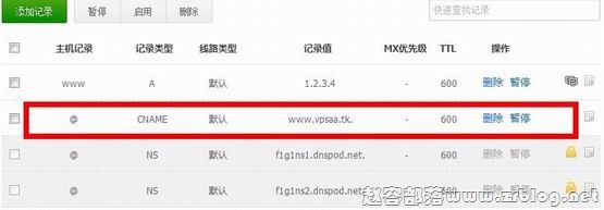TK就TK,我就拿他说事儿,我比较喜欢将域名放到DNSPOD解析,截图域名解析部分以DNSPOD为例。