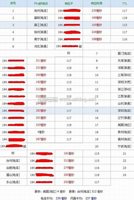 【各地ping值】由于VPS测试时间有限,就暂不做站,下面送上各地ping值给大家参考(为保护IDC权益,对于本文中出现的部分敏感信息做简单处理,请见谅!)